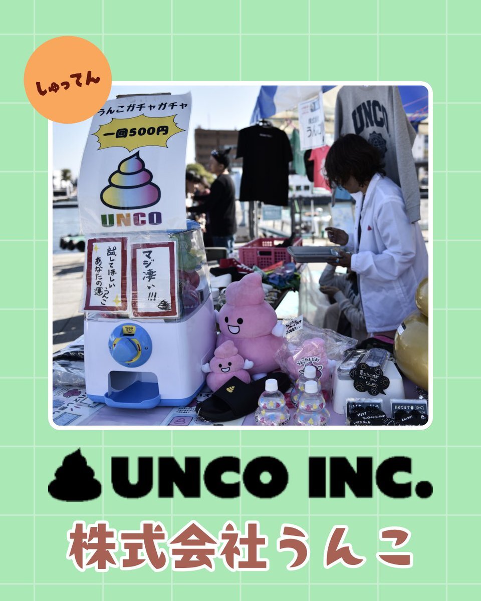 <注目出店👀> @unco_official かわいいもの好きさんも、うんこ好きさんも集まれー! かわいいうんこをモチーフにした、アパレル・雑貨を販売いたします^^ うんこで世界を楽しくしよう♪ #うんこ #株式会社うんこ #笑顔 #注目 #出店 #かわいい #おもしろい pic.x.com/wGl1KR6qMJ