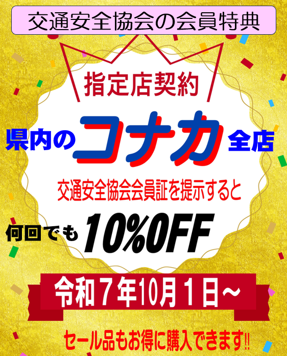 【交通安全協会会員特典のお知らせ!】 🔵神奈川県内の「#株式会社コナカ」さん全店舗で店頭価格の10%割引!😲 🔵お買い物の際に交通安全協会の「会員証」を提示!💳 🔵会員有効期間中は何回お買い物しても毎回割引!🤩 🔵優良運転者の会員さんは最長5年間有効!😲 豊富な商品には女性用も☺️ pic.x.com/hTmjdr2h2o