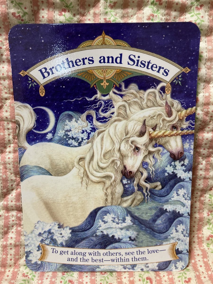 このカードが目についたアナタへのメッセージです。 兄弟•姉妹 周りの人達と上手くやっていくには、その人の中に愛を、そして1番良いところを見るようにすることです^_^ #Magical Unicorns #ドリーン•バーチュー #株式会社JMA•アソシエイツ pic.x.com/OETXw3tD0Y