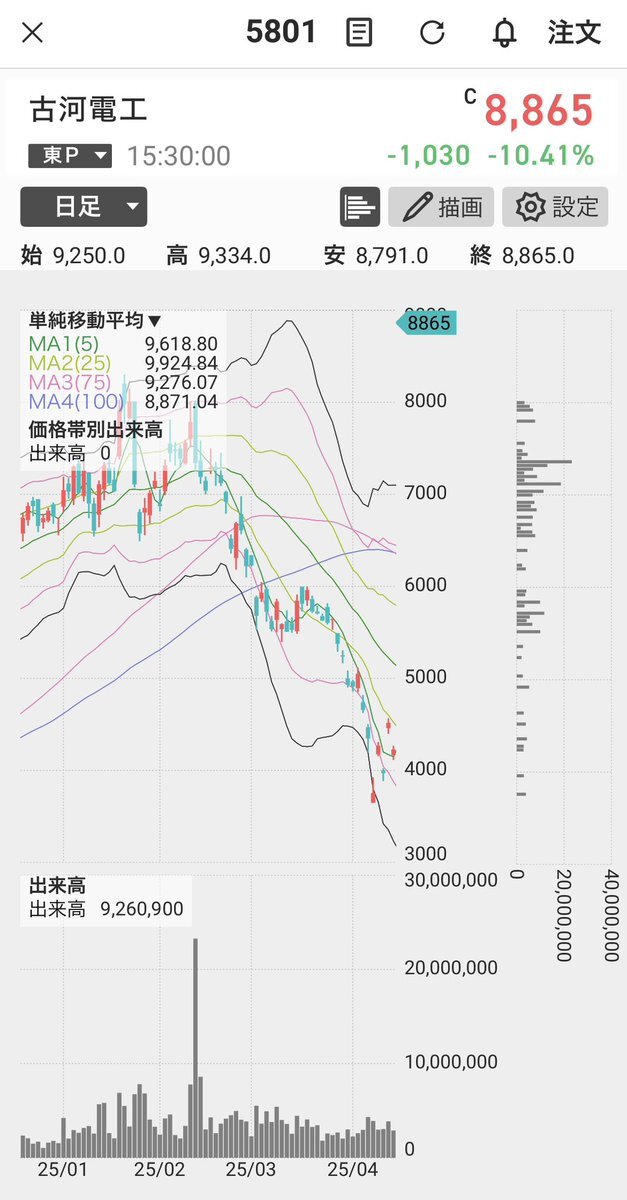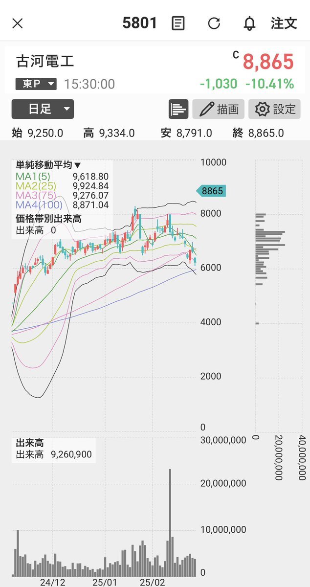 古河電工、下がった時に買えばほぼノーリスクで稼がせてもらったけど今回のチャートからは厳しい物を感じる🥹 100日線でギリギリ耐えてるけどここで反発出来なかったら年初と同じような動きになりそう、、、 #株式投資 #株クラ pic.x.com/nEzfvkdQ9M