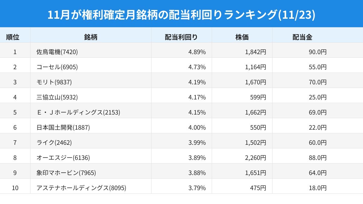 【配当利回りランキング】11月が権利確定月銘柄の配当利回りをまとめました。 詳細はこちら👇 kenriochi.com/dividend-ranki… #配当利回り #配当 #投資 #株式投資 #投資家さんと繋がりたい pic.x.com/RaDEV76DLe