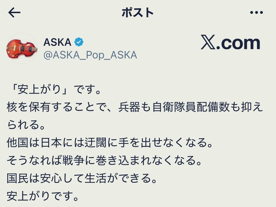 返信先:@takaichi_sanae他1人🌐抑止力(#軍拡/#核武装)の名の下に世界の #安全保障 を賭けるリーダーの世代は、もう世界には必要ありません。 不変の「#戦争の論理」によれば、勝者と敗者に関係なく、最終的には全ての関係者が #莫大な損失 を被る事になる。 この原則は #核戦争 の文脈で特に当て嵌まる。 pic.x.com/SJtxRCQNj4