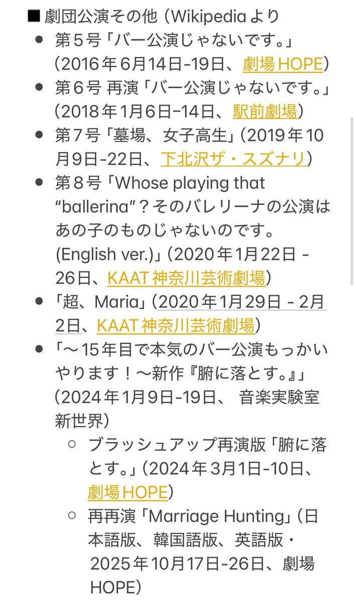コットンクラブでの根本宗子さん作品観劇。 1本目「Marriage Hunting」、前情報一切入れずに観たら何度も沢山声出して笑えるセリフの連続だった、テーマも面白かった。 一方、コロナ禍配信で観た『Happily Ever After』は全く雰囲気が別で、この2作品を同時に観られて非常に贅沢でした #根本宗子 pic.x.com/QF3dHTTpaj