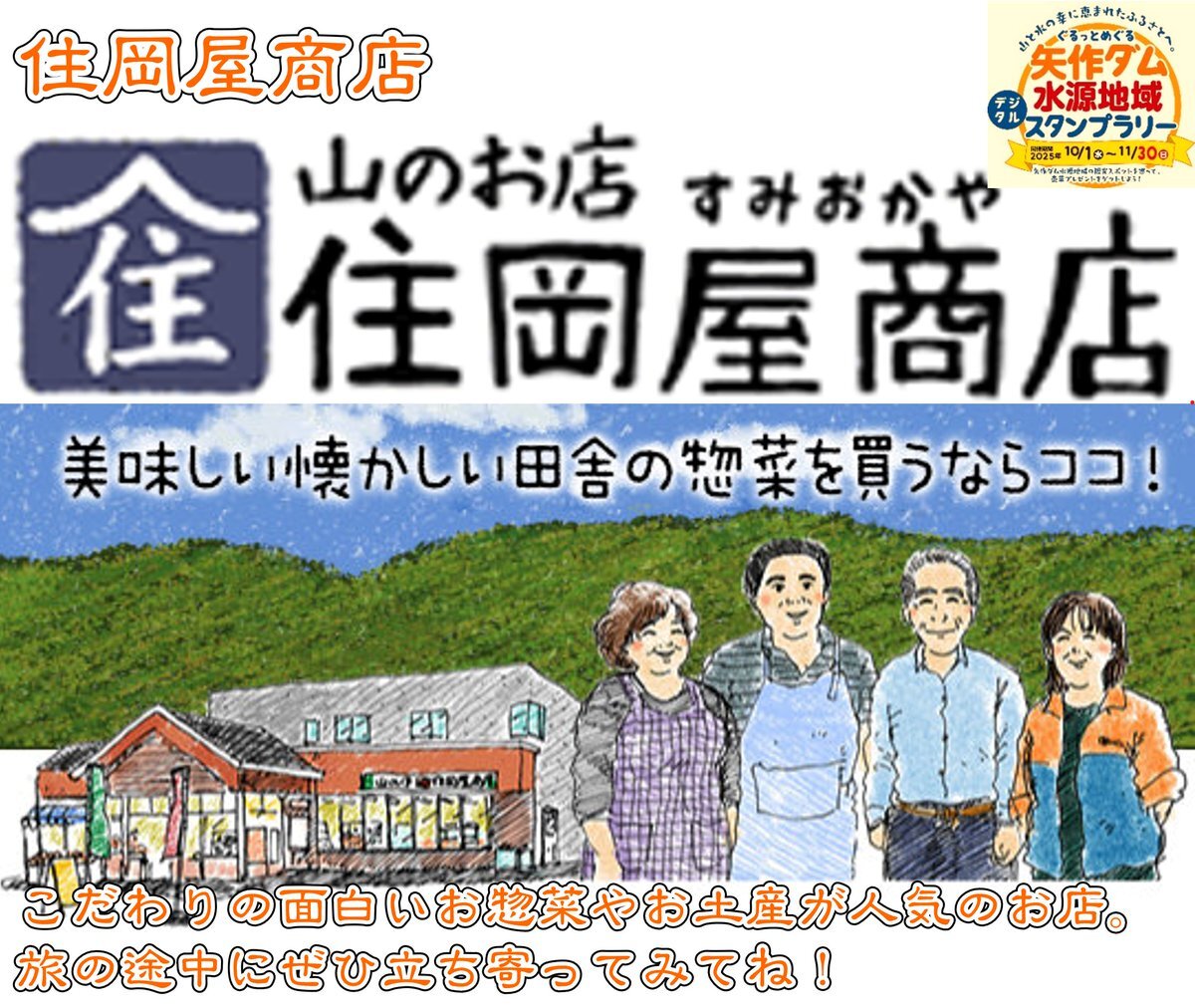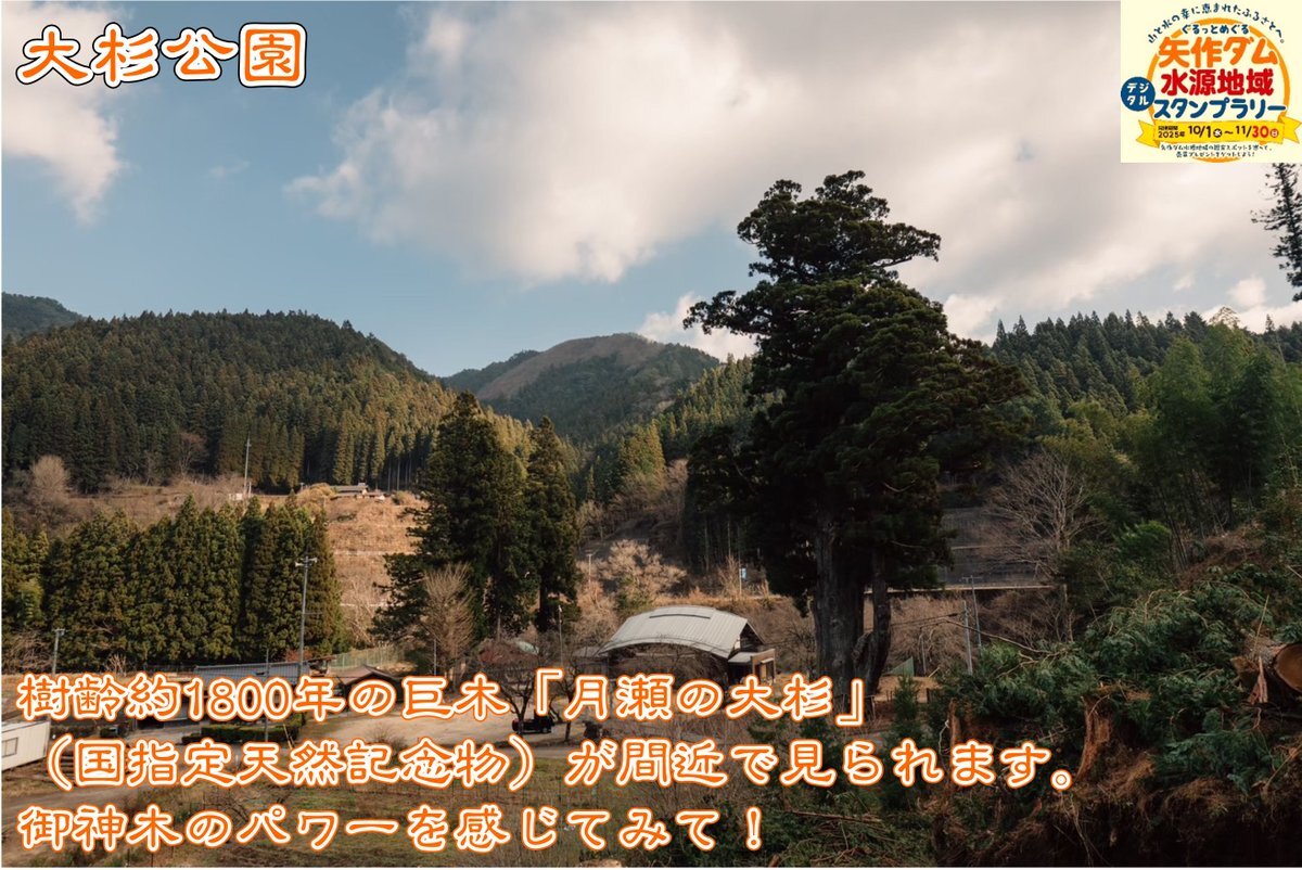 【スタンプラリー情報♪】 現在開催中のスタンプラリーのチェックポイントを画像でご紹介します!今回は #根羽村! ①#森の駅ネバーランド ②#住岡屋商店 ③大杉公園 スタンプラリーも後半戦!矢作ダムでも紅葉の気配…! #矢作ダム #矢作川 pic.x.com/oGP0Ukr0Qg