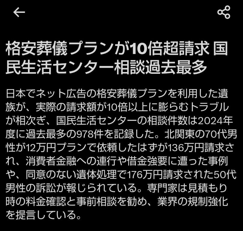 【更新通知】格安葬儀でトラブル頻発 12万のはずが136万→消費者金融に連行、監禁し親族に借金させる #格安葬儀 #消費者金融 #トラブル itainews.com/archives/20550…