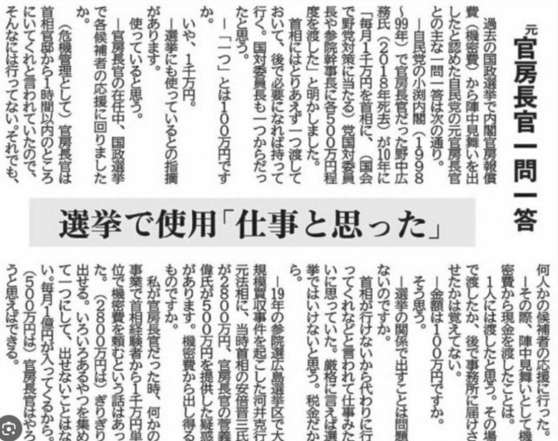 内閣官房機密費を選挙で使用。 『仕事かと思った』 一般の常識を逸脱した者たち。呆れる。 次の選挙で必ず落選させよう、泥棒自民党は要らない。 x.com/pDyvhzFJAIAJe9…