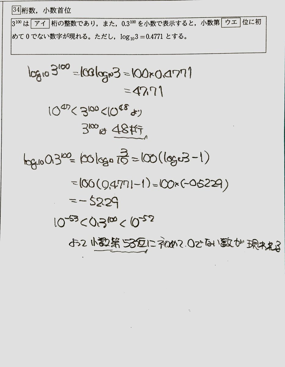 Σランダム #高校 #数学 #数学2 #指数対数 #対数 #桁数 小数第何位にはじめて0でない数が現れるか pic.x.com/V9N3KLno8e