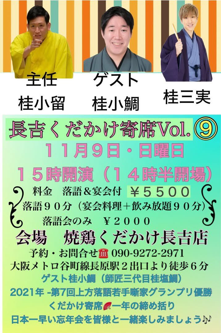 本日は15時開演🎉長吉くだかけ寄席 当日券は☎️でお問合せください🎶 🪭落語三席 終演後 🍻宴会 #桂小留 #桂三実 ゲスト #桂小鯛 落語家さんと🍻日本一早い忘年会 一緒に楽しみましょう😃🎶 #焼鶏くだかけ長吉店 #寄席 #落語 pic.x.com/fsPaH0x6Dn