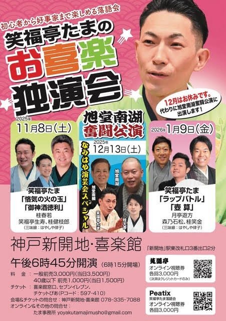 【🎍1月公演のお知らせ🎍】 予約開始しました〜🤩 1月28日(水)#神戸新開地喜楽館 19時開演 #三遊亭兼好 師匠の関西公演「#勝手兼好17」開口一番 #桂健枝郎 さん😉兼好師匠、1年ぶりの喜楽館での単独公演😆御予約お待ちいたしておりま〜す🙇♂️ 予約受付中! yoshidashokudou.com/product/kenko/ #吉田食堂 pic.x.com/w95lCv8eXt