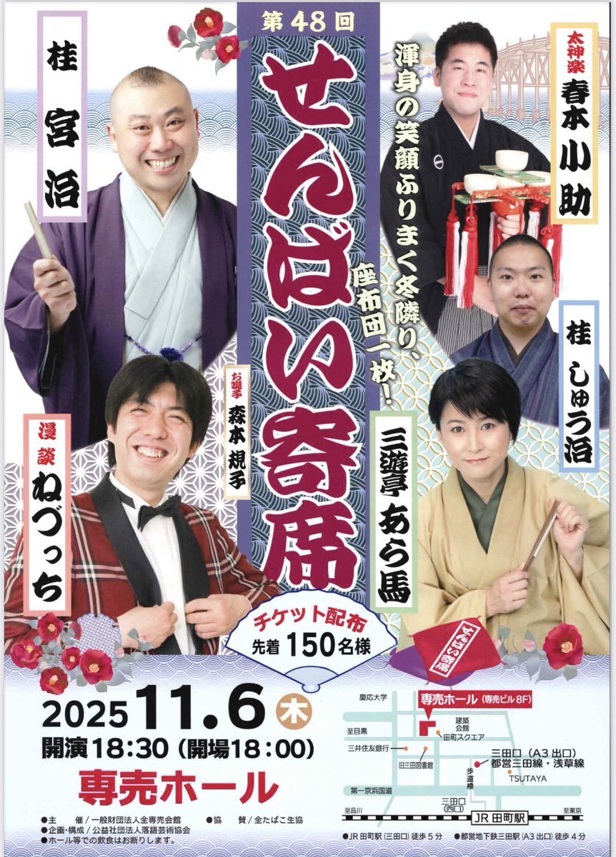 苦手な噺訓練所連雀亭からの #せんばい寄席 ご来場ありがとうございました🙇♂️ なぞかけのお題で「三遊亭あら馬」とお客様から出て嬉しかった〜😊 ねづっち先生が素敵に整えてくださりニマニマ🙌 宮治兄さんに ご馳走になり、根掘り葉掘り 生きるヒントを伺い元気をいただく😭 幸せなひとときでした♪