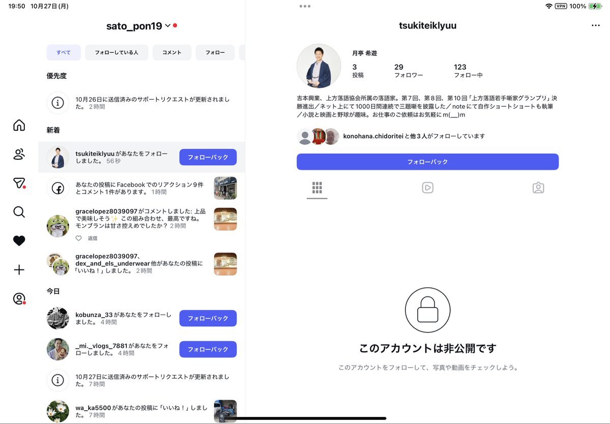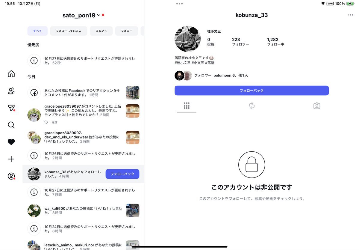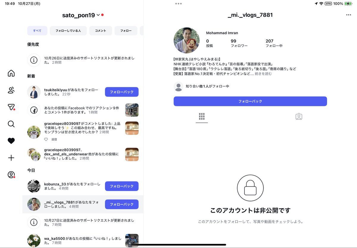 先程、Instagram上で明らかに噺家さんの偽アカウントからフォローされたので、速攻で報告&ブロックしておいた…。やれやれ…。 #林家笑丸 #月亭希遊 #桂小文三 #拡散希望 pic.x.com/CqNYY5wH25