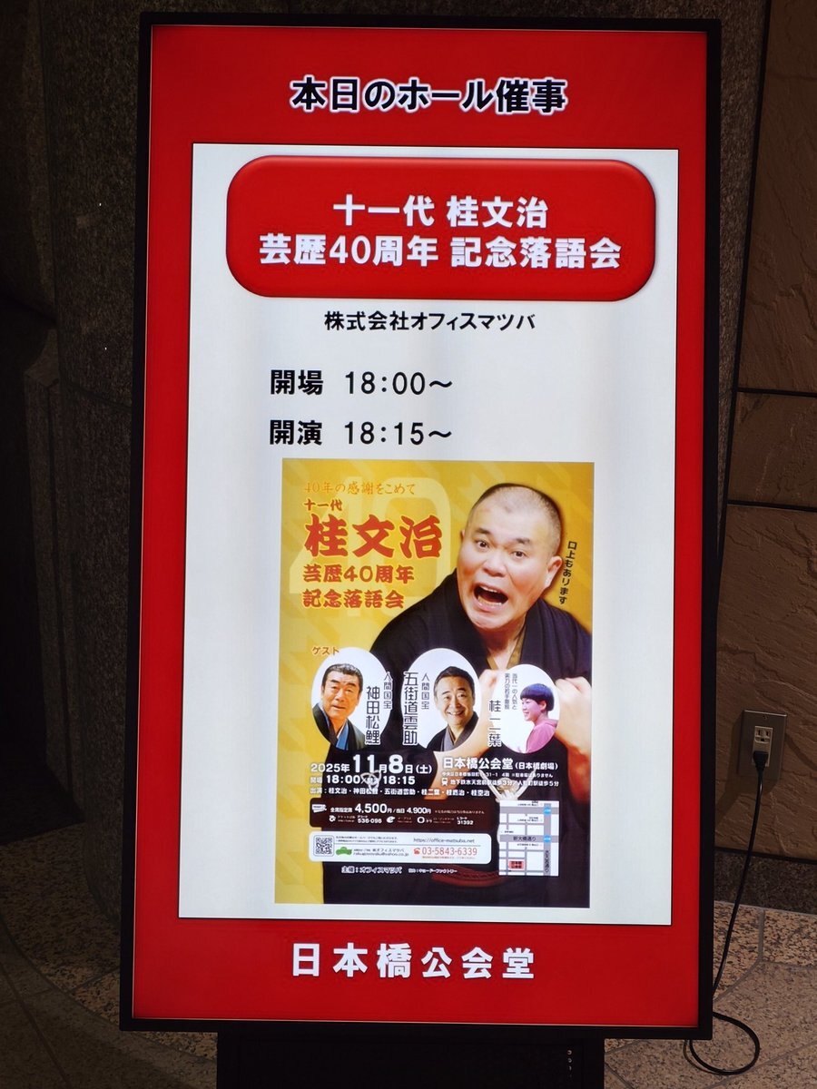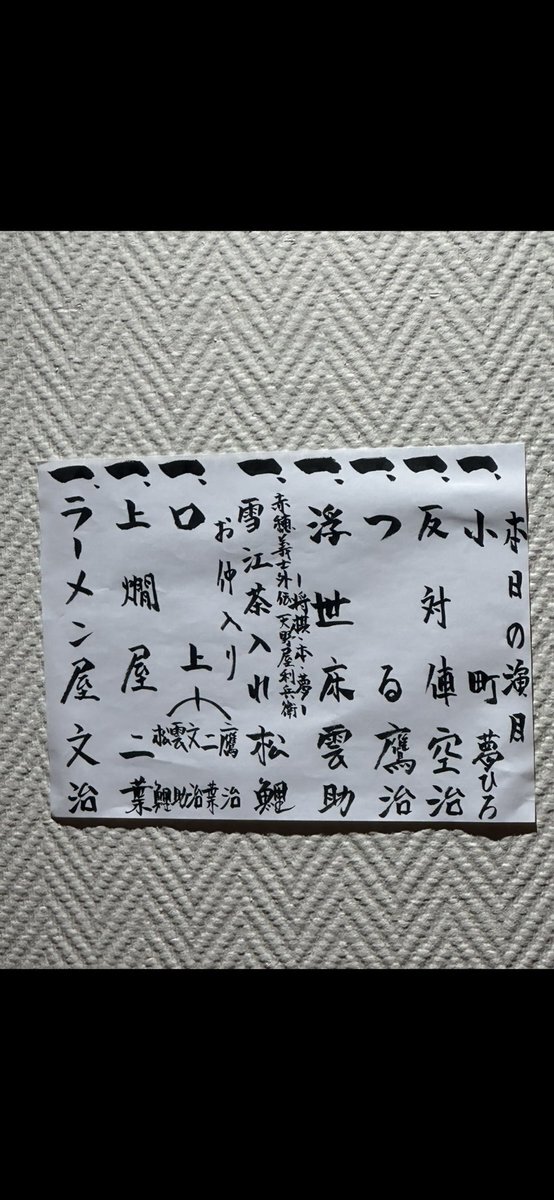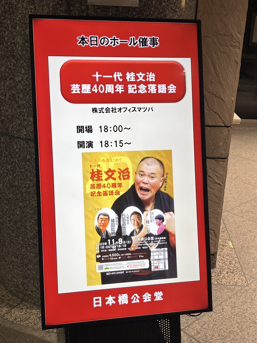 昨夜の日本橋公会堂にお越しのお客様に感謝致します。松鯉先生や雲助師匠とお二人の人間国宝、人気者の二葉さんとご一緒出来て夢心地です。口上まで出演して頂きました。素晴らしい芸歴40周年記念の会になりました。興奮冷めやらぬまま静岡に向かっております。まだ、間に合います。お待ちしてます。