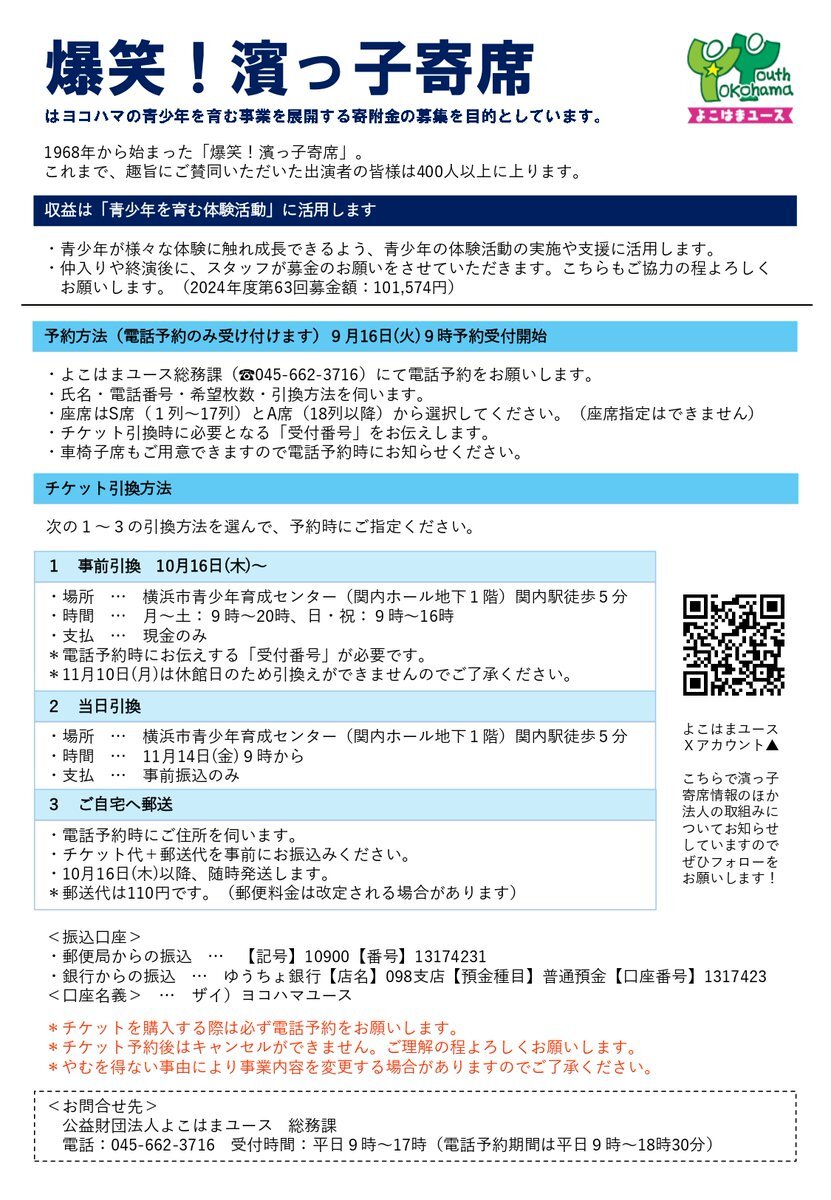 \濱っ子寄席のパンフレットが完成しました/ S席が残りわずかです、ご予約お待ちしております! ○11/14(金)18時~関内ホール ○S席4,000円/A席3,500円 ○出演者 #柳亭市馬 #柳家権太楼 @office_gontaro #桂文治 @11bunji #柳亭小痴楽 @kochiraku #柳家権之助 @gonnosukedesu #遠峰あこ @acotomine pic.x.com/la2gs7jEHx