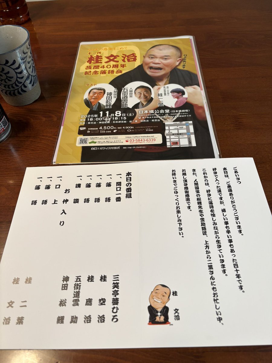 おめでとうございます。 楽しい会でした。 ラーメンを作って食べることにします。 #十一代桂文治 #芸歴40周年記念落語会 #桂文治 #神田松鯉 #五街道雲助 #桂二葉 #桂鷹治 pic.x.com/EeNw4j6T8e