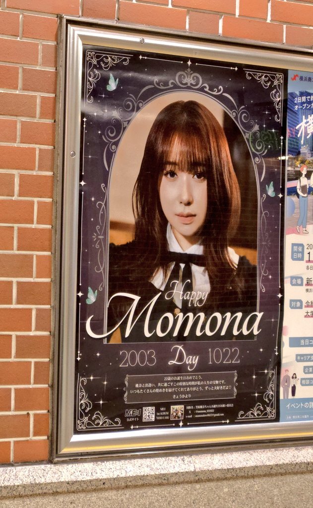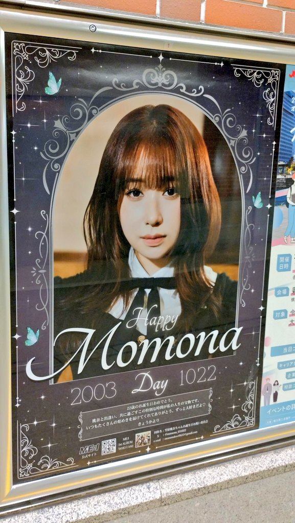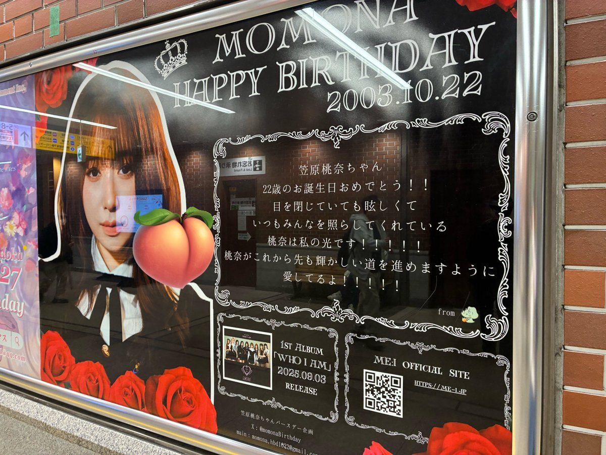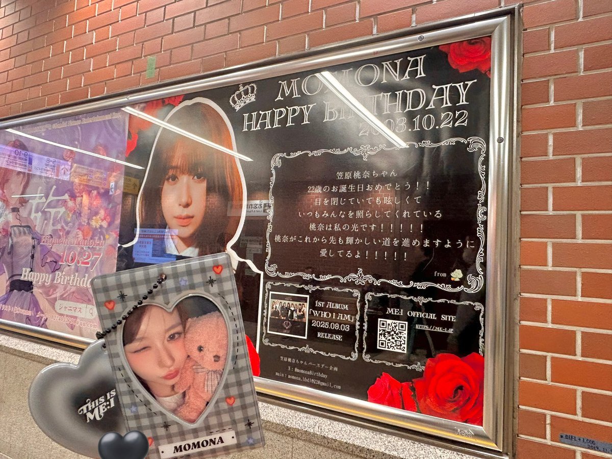 ྀི˖ ࣪ ⊹お誕生日広告掲出のお知らせ⊹ ࣪ ˖ ྀི #ME_I #笠原桃奈 ちゃん22歳のお誕生日をお祝いして、本日より駅広告を掲出しております。 📍: JR横浜駅南改札内 🗓: 2025.10.22(wed)〜10.28(tue) 🏷️: 桃奈とキラめく世界へ よろしくお願いします໒꒱ྀི₊˚⋆ #HAPPYMOMONADAY @official__ME_I_