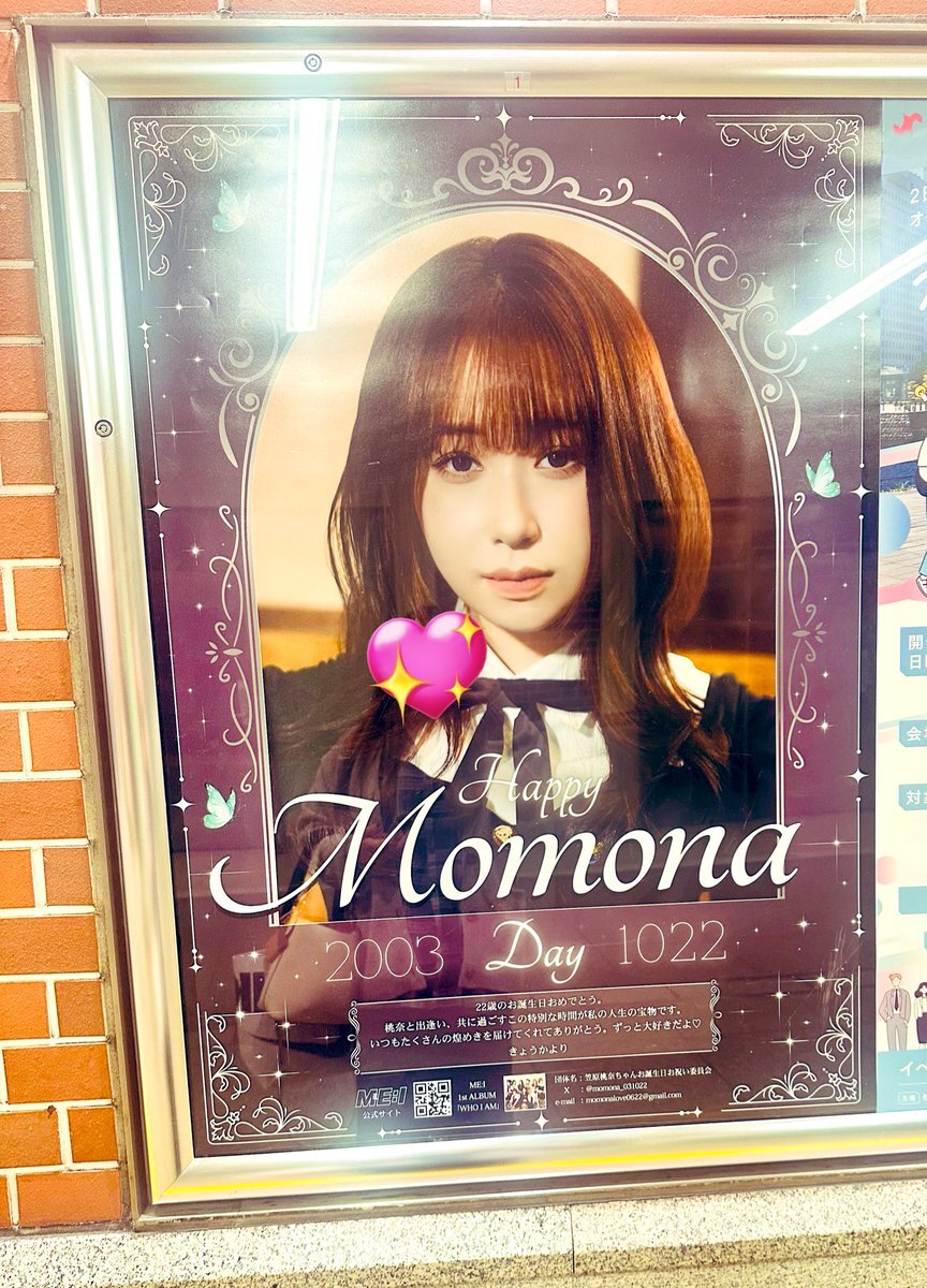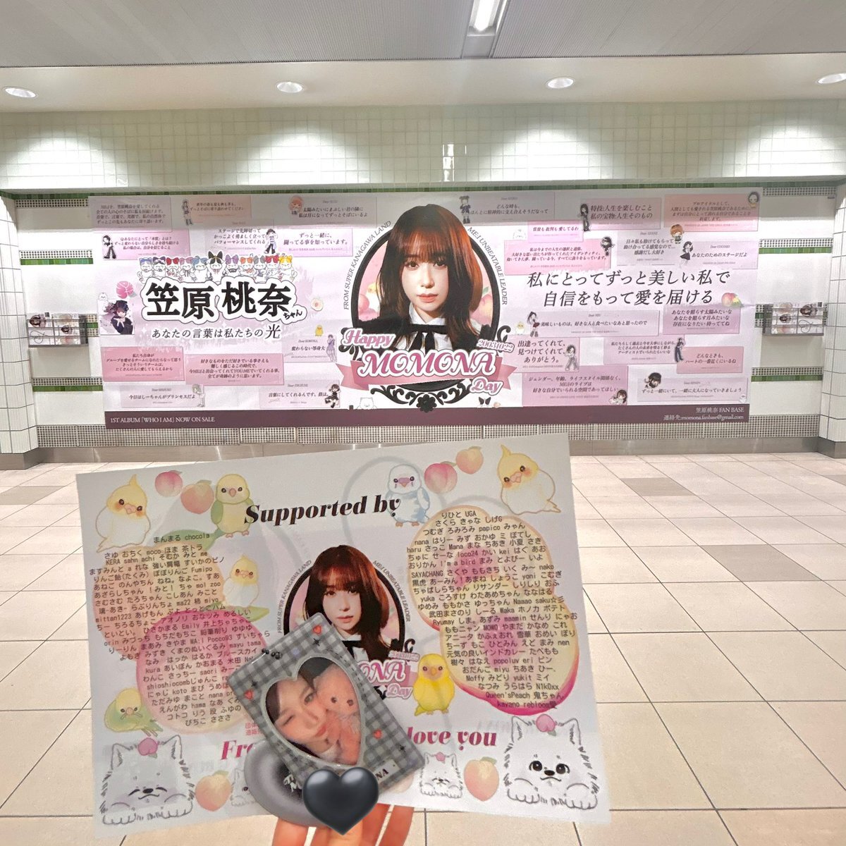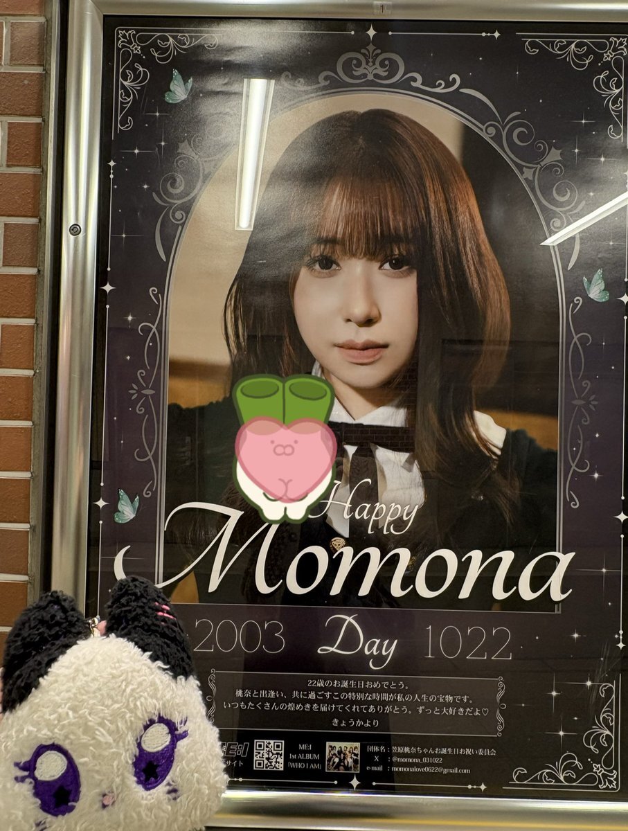 可愛らしい桃奈のお誕生日広告を拝見してきました♪ 南改札内でお隣にも素敵な広告があって並んでる桃奈を見てたらとっても幸せな気持ちになりました🥰 改めておめでとう🎂🖤 また素敵な広告をありがとうございます✨ #ME_I #笠原桃奈 #桃奈とキラめく世界へ #HAPPYMOMONADAY pic.x.com/7jgWYEn6m1 x.com/momona_031022/…