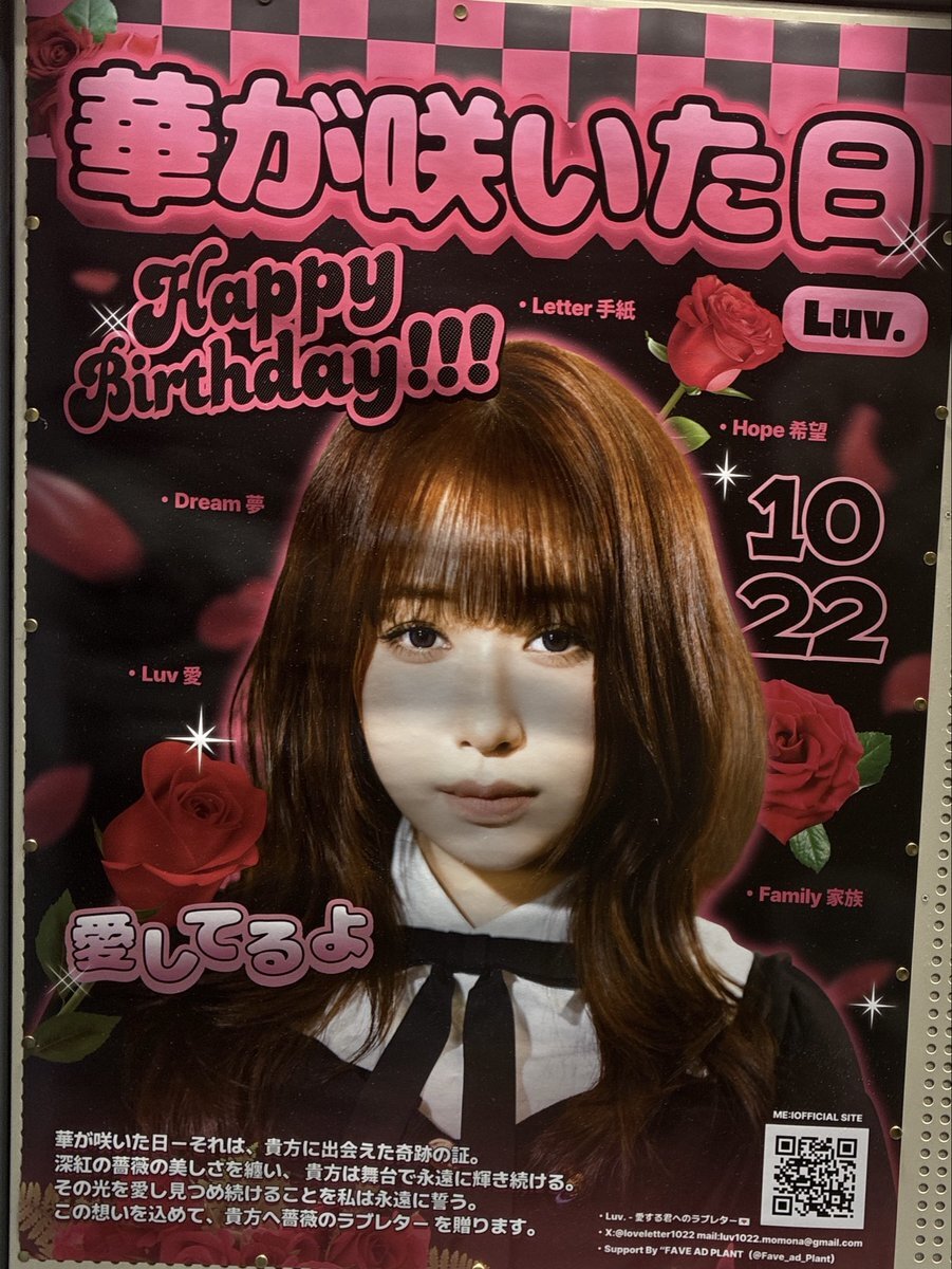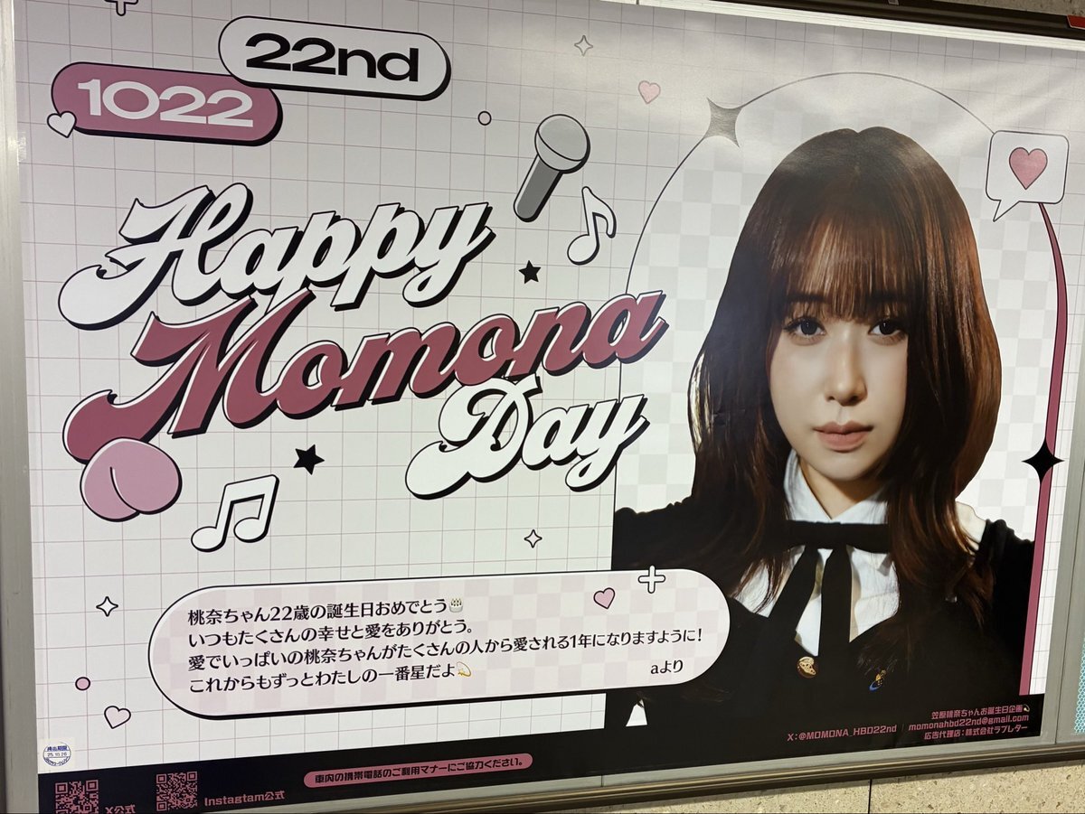 #ME_I#笠原桃奈 さん のお誕生日をお祝いした広告をサポートさせていただきました🌟 📍: JR横浜駅南改札内 🗓: 2025.10.22(wed)〜10.28(tue) #応援広告 #FAVE_AD_PLANTサポート実績 #ふぇいぶ事例 #桃奈とキラめく世界へ #HAPPYMOMONADAY @official__ME_I_ x.com/momona_031022/…