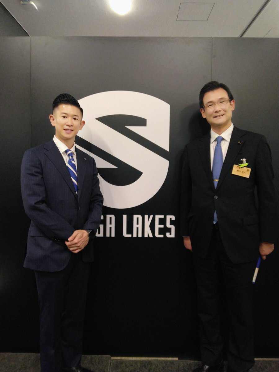本日2日、滋賀レイクスホームゲームを観戦📣。見事勝利!会場一体のゴーゴーレイクスコールは圧巻!また、大津商高120周年式典で記念講演くださる滋賀レイクスターズ原社長にご挨拶叶いました。 #滋賀レイクス #ゴーゴーレイクス #原毅人社長 #大津商高式典 #桐田まこと #滋賀県議会議員 #滋賀県自民党 pic.x.com/1uaUmq6fiW