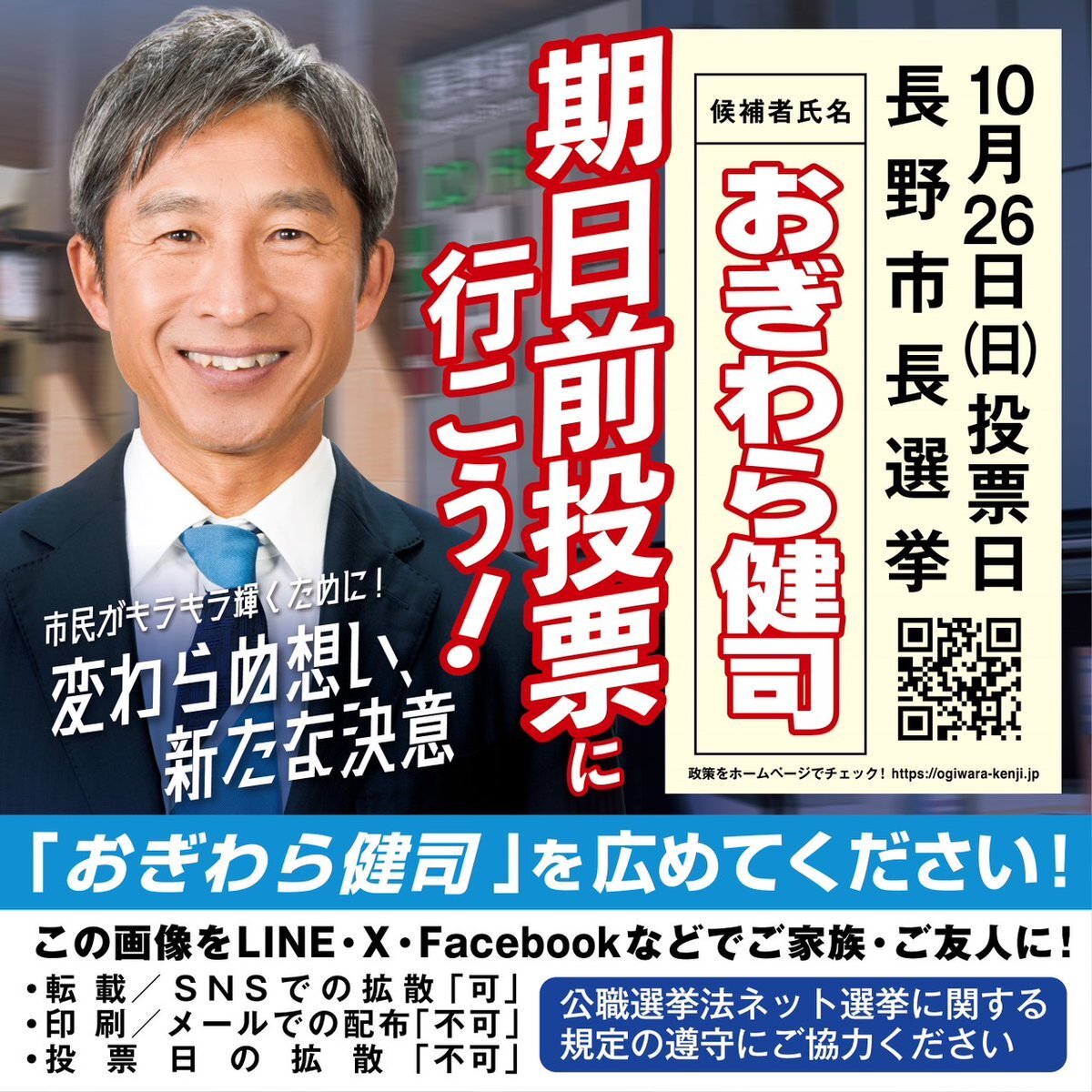 長野市長選挙。 あなたの大切な一票は、ぜひ【おぎわら健司さん】へお願いいたします。🎿 #長野市長選挙 #おぎわら健司さん #桐田まこと #滋賀県議会議員 #大津市瀬田駅 pic.x.com/y8rBTjlSCp