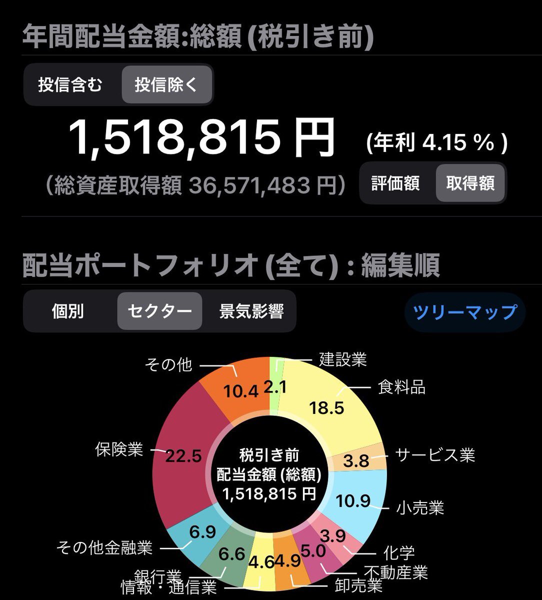 年間配当金額💰 税引き前1,518,815円🧮 配当金より株主優待を重視しています🎁 今後も値上げラッシュが続くと思うので、株主優待で生活コストを引き下げ、家計を守ります🍀 夢は #桐谷さん のようなALL優待生活を送ること🌟 いつも全力フルポジ投資❤️🔥 年間配当240万目指して頑張ります💪🔥 pic.x.com/FztkYLLE5e
