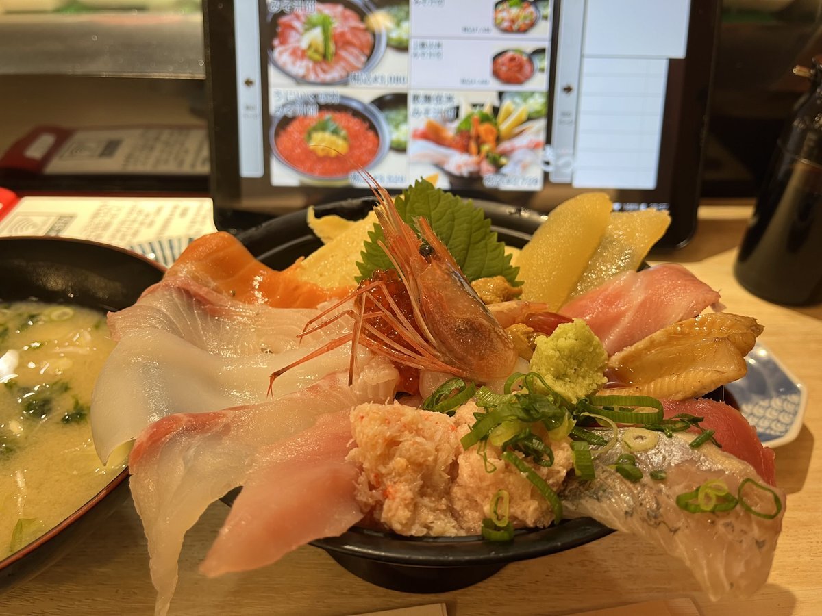 SFPホールディングスの優待は11月迄 それで7日夜🚲で新宿のきづなすしへ。歌舞伎丼(左上)を頂きました☺️ 昨日は、新宿ルネサンスへ泳ぎに行き、その後連続のきづなすしへ。ばらちらし丼を頂き、SF Pとクリエイトレストランツの優待で支払い。SFPを使い切りました😄 お店は、ゴジラの見えるところです。