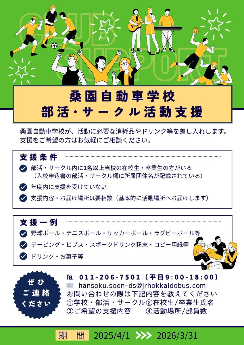 桑園自動車学校では、 部活・サークル支援を行っています。 これまでの支援の実績はさまざま!! 支援をご希望の方はご連絡ください! 📧hansoku.soen-ds@jrhokkaidobus.com #桑園自動車学校 #北海道 #札幌 #桑園 #札幌市 #自動車学校 pic.x.com/hGRgsMTXwp