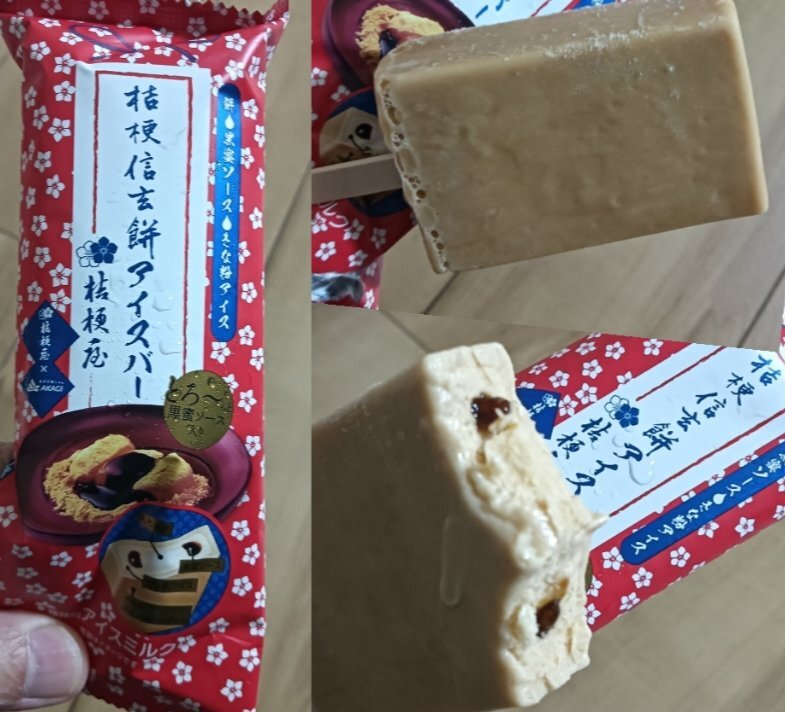 近くのスーパーで、#桔梗信玄餅 のアイスバーが売ってあったので、試しに食べたら、激ウマ! きな粉ベースのアイスに、黒蜜、餅が入ってて、ほんとに信玄餅味! 甘いものを控えてますが、これは毎週食べたくなるレベルの完成度! 気になった方はぜひ食べてみてください! #赤城乳業 pic.x.com/VzpY6Cea7O