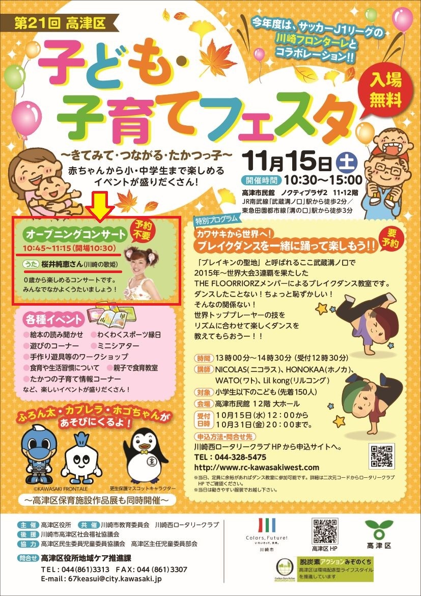 来る11月15日(土)は #高津区子ども子育てフェスタ 開催日です。 10:45開演のオープニングコンサートでは #桜井純恵 が元気に歌います。0歳から無料で観覧できます(大人もOK)のでぜひご来場ください! #第21回高津区子ども子育てフェスタ #高津市民館 #溝の口 melody-s.com/?p=13780&aaa=t pic.x.com/GucegggjCn