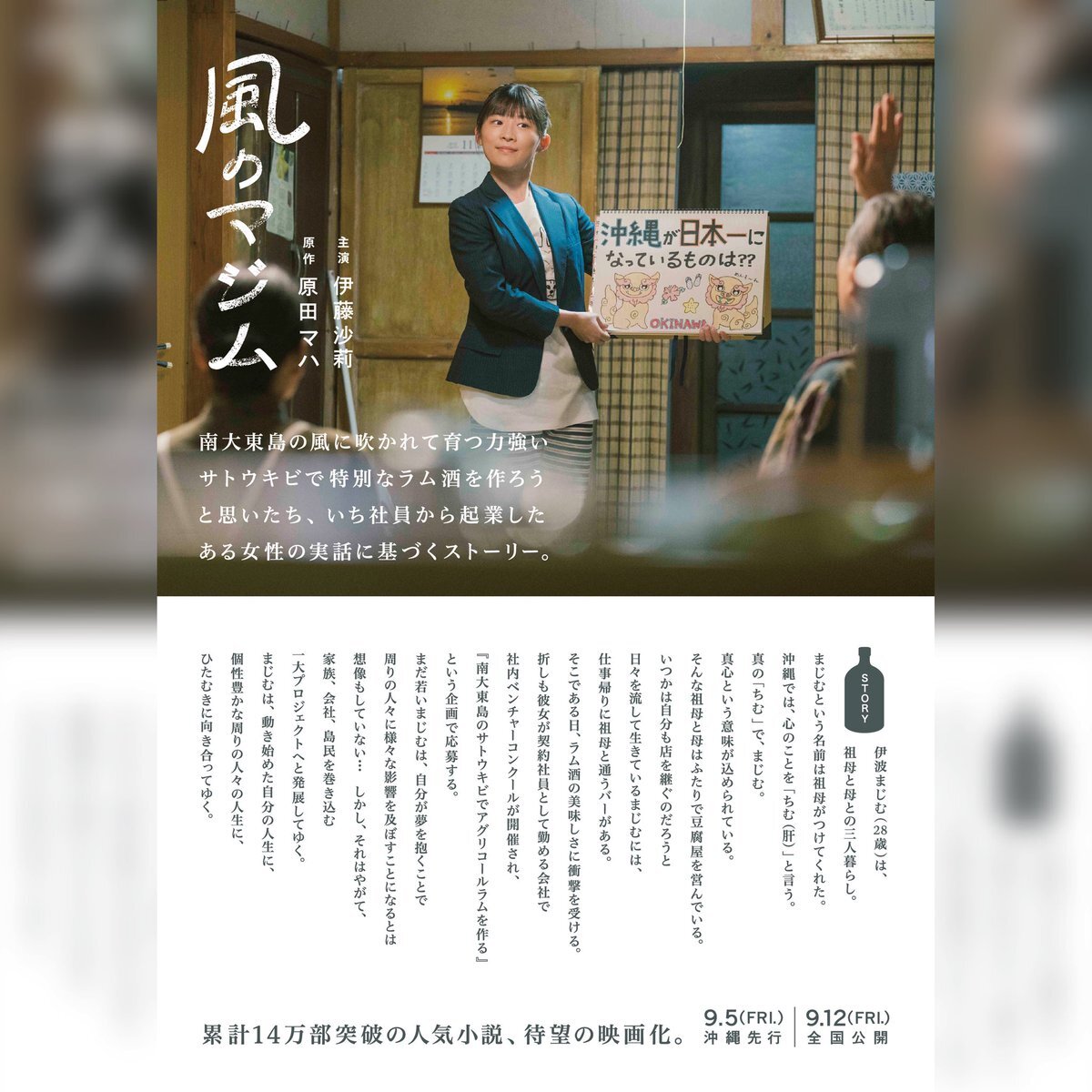 返信先:@majimu_eiga4#伊藤沙莉 主演 #原田マハ 原作✨ 映画 #風のマジム @majimu_eiga 🌟絶賛上映中🌟 🎥#シネマプラザハウス(沖縄市) ※11/20(木)へ終映予定延長 上映時間 12:40~ 🎥#シネマパレット (那覇市)11/14~🆕 上映時間 13:00~ 🎥#桜坂劇場(那覇市)@sakurazaka2005 上映時間 12:30~、(11/16のみ)15:50 pic.x.com/Co0Ksnrl72