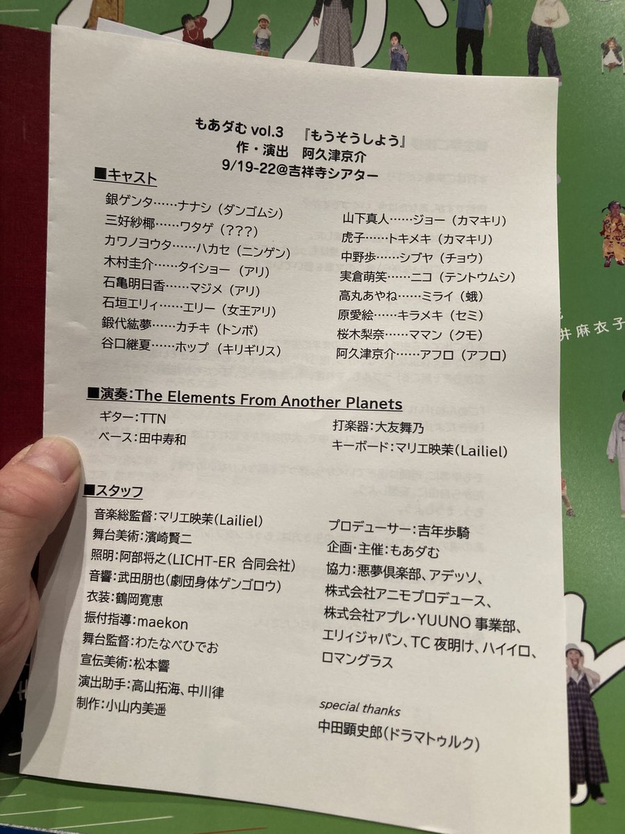 #もあダむ#もうそうしよう#実倉萌笑 さんは初舞台を感じさせず劇場を色鮮やかに。ただ一人反対を唱えるワタゲ役の #三好紗椰 さん 。正体を知ればそれも納得。終始浮かない表情だけども 仲間の言動に心動かされる。 #桜木梨奈 さん演じるママンのナナシへの思い伝わる演技はさすが。