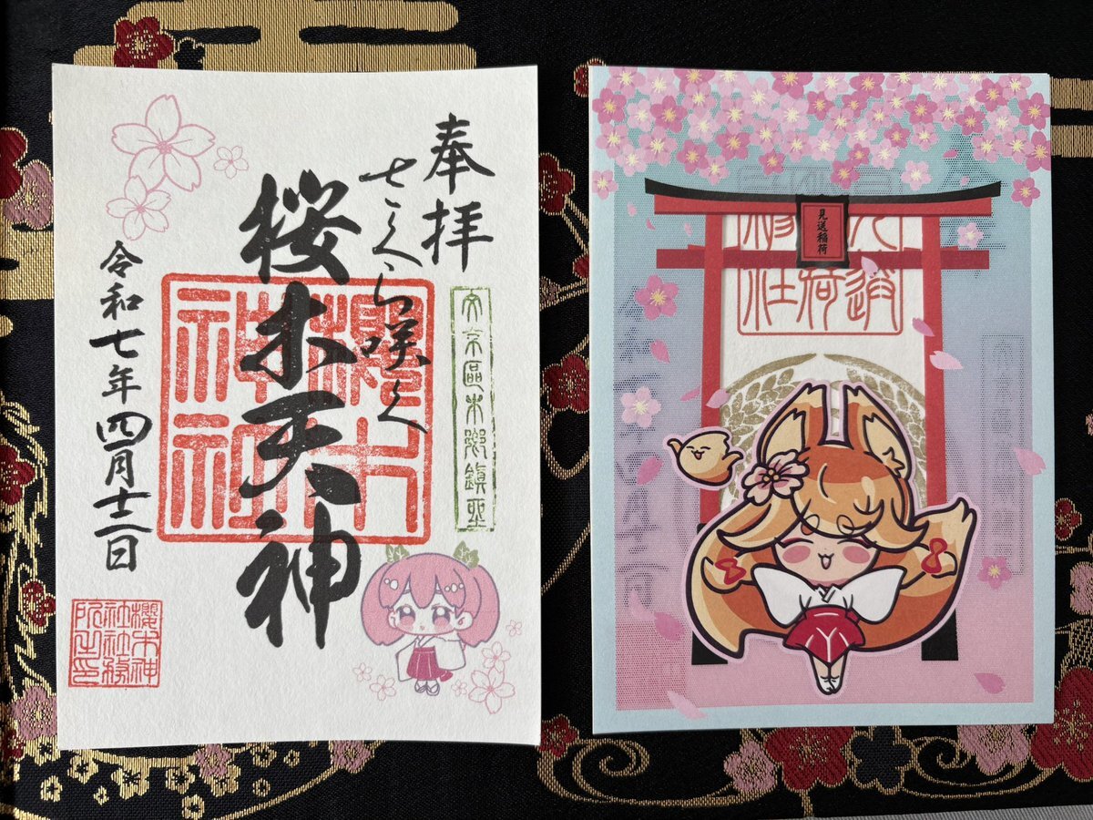 桜木神社 東京都文京区本郷4丁目3-1 月替の御朱印と見送稲荷例大祭限定御朱印を頂きました😊 おまけも沢山😆 拝殿横の桜はほぼ葉桜でしたが、葉っぱの緑もきれいで素敵です。 新しく見送稲荷の絵馬掛けが設置されていました。 絵馬が可愛い過ぎて奉納せずに持ち帰りたいのですが💦ダメ? #桜木神社 pic.x.com/E4FIO5KgT1