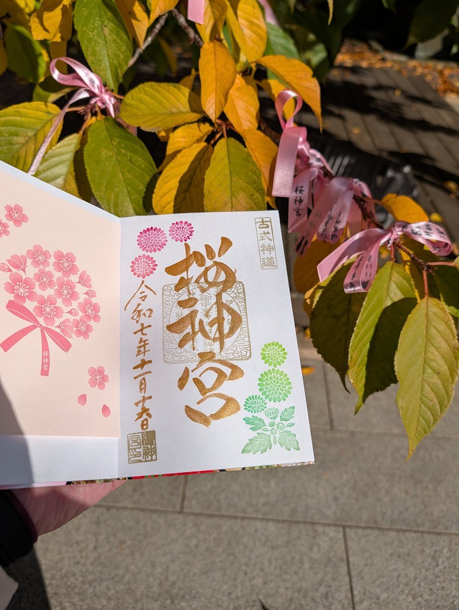 ⛩️桜神宮さまに参拝させて頂きました 平日だったので参拝者も少なくスムーズに御朱印を頂けました 11月の菊の御朱印と和柄の御朱印を拝受させて頂きました😊とても綺麗な御朱印です #桜神宮 #菊御朱印 #和柄御朱印 pic.x.com/ylQt6Df8qs