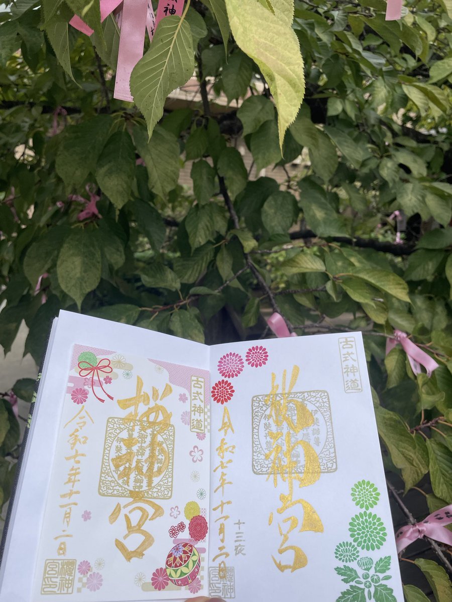 世田谷区桜新町にある 今日、桜神宮に訪れさせてもらい いただいた御朱印 桜神宮と大崎にある居木神社は月毎に色んな御朱印があり 毎月訪れさせていただいております #神社 #桜神宮 #御朱印 pic.x.com/wjLNYov6bi