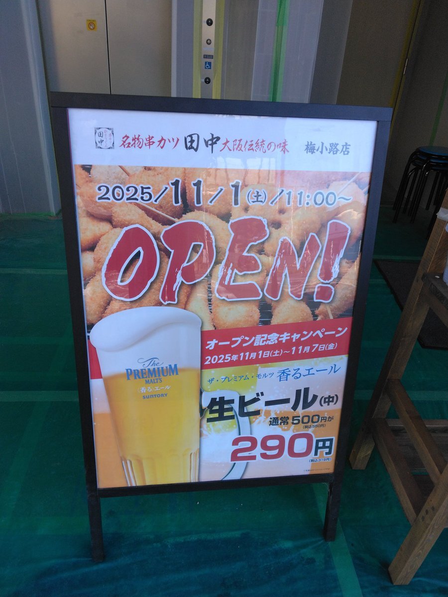 串カツ田中梅小路店は、11月1日(土)11時開店らしいです。隣はラーメン屋のようです。 #串カツ田中 #開店 #新店 #京都鉄道博物館 #梅小路公園 #京都市下京区 pic.x.com/F0qJurETur
