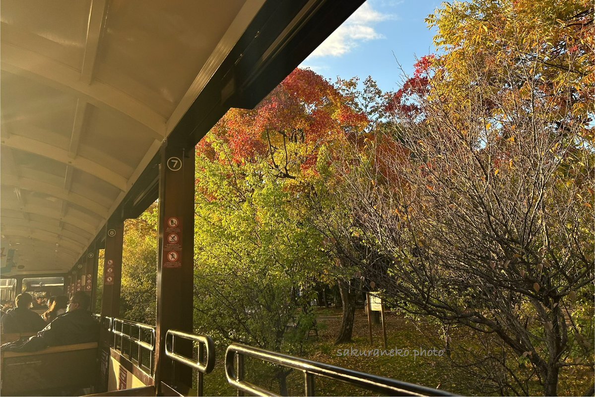 スチーム号からみる梅小路公園。 桜の紅葉が進んでました。 この週末、紅葉とスチーム号の撮影ができそう🍁 2025.11.11 #梅小路公園 #京都鉄道博物館 #スチーム号 pic.x.com/9WOyhE37eV