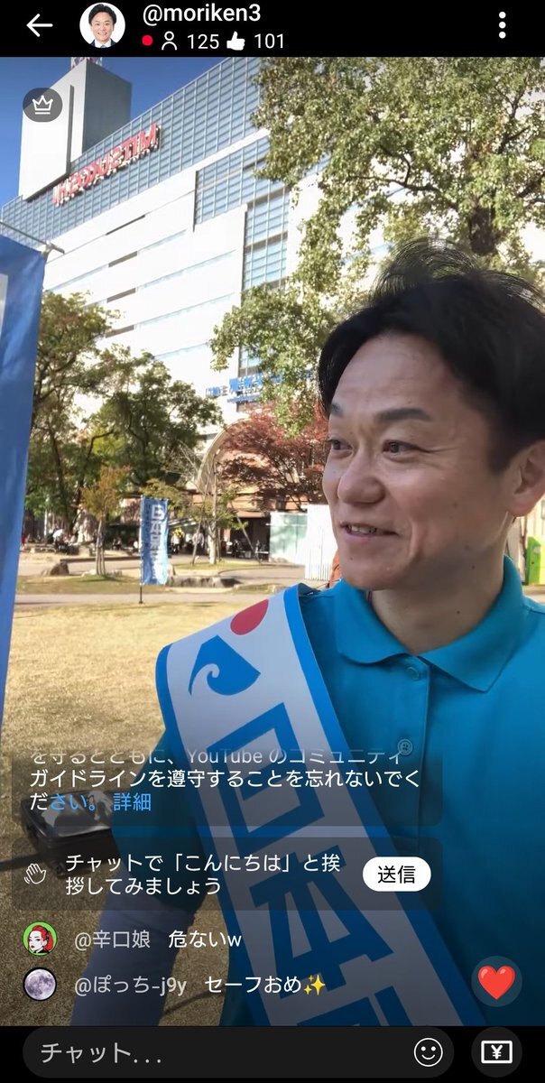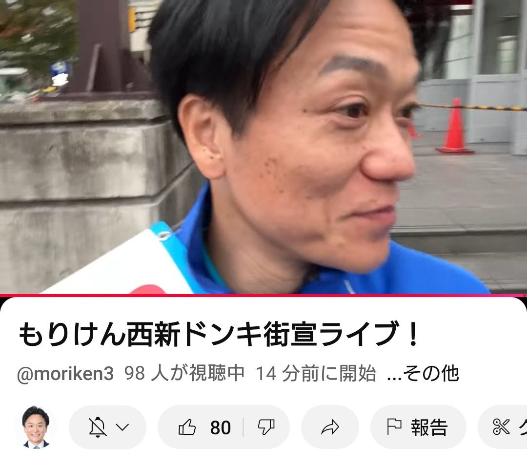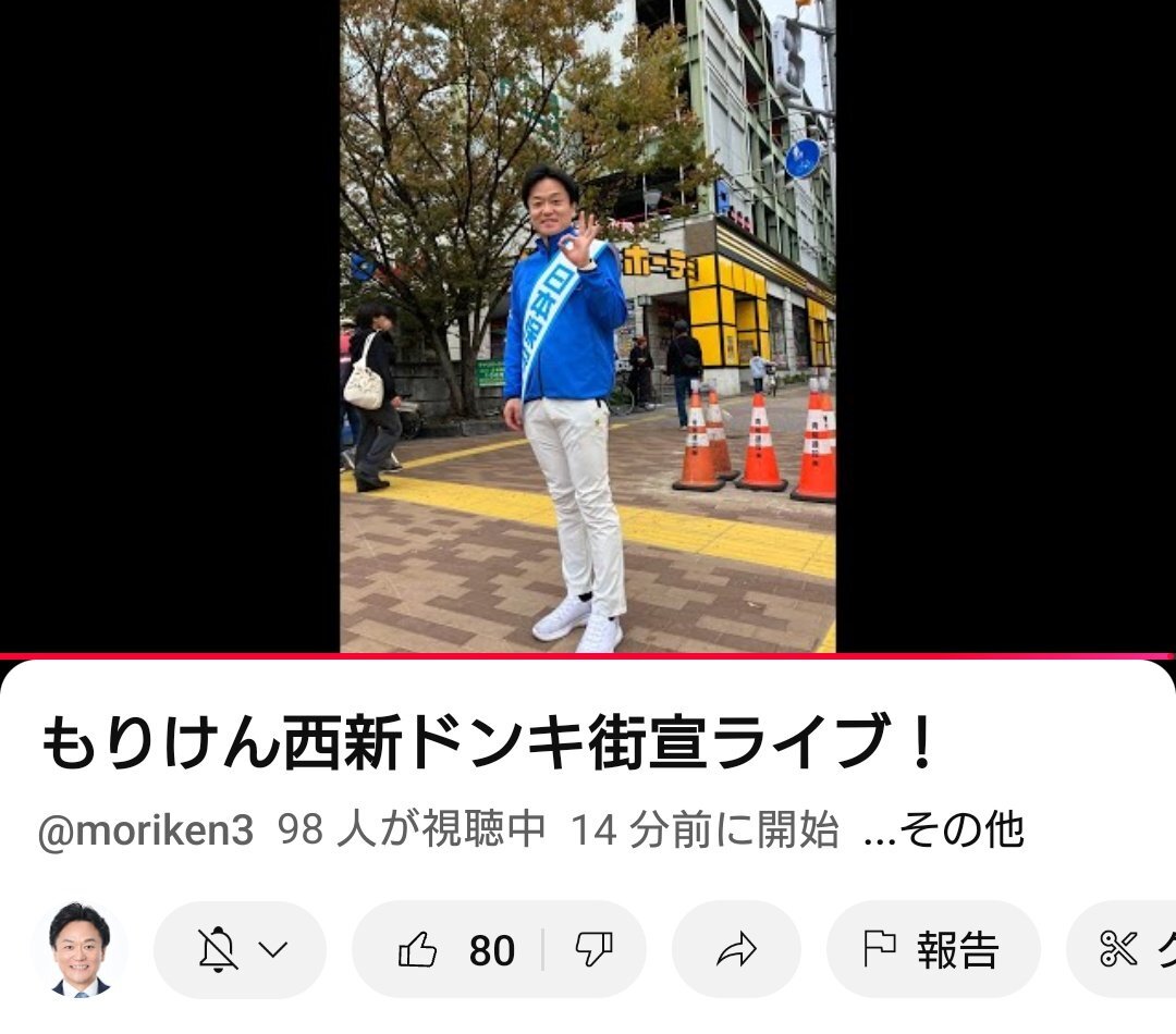 もりけんチャンネルさん❗️ 西新ドンキ街宣ライブ‼️🥰✊ @moriken0119 #日本保守党 #日本を豊かに強く #日本保守党福岡支部長 #森けんたろうを国政へ youtube.com/live/wt9ks1VQD… pic.x.com/GRKKWEY13S