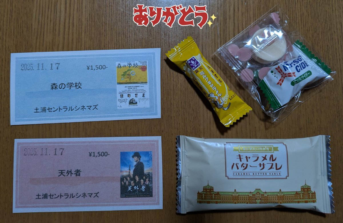 2025年11月17日(月)➁ マトくんと五代さまに逢いに土浦へ🎬️ #森の学校 47🐌🐢🐇 #天外者 74🎩🌸🐎 今回、マトくんより五代さまへの熱量が凄くて五代さまを見つめる目が❤️❤️に(笑) お菓子と温かい🍵☕ごちそうさまでした😉 『天外者』ず〜っと上映中🎩🌸🐎 #土浦セントラルシネマズ さん #三浦春馬 pic.x.com/JNfskfuLbH
