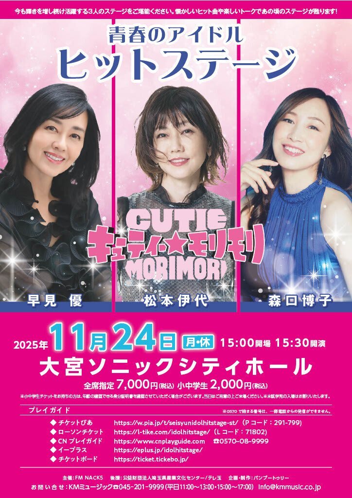 え!!ありがとうございます #早見優 さん #松本伊代 さん #森口博子 さん #キューティーモリモリ #大宮ソニックシティ チケット発売中!! pic.x.com/mxDb80PDTJ x.com/NinjaHachi_/st…