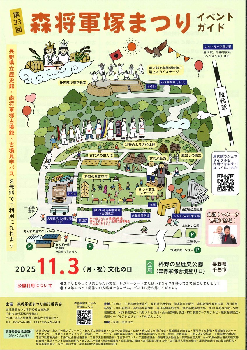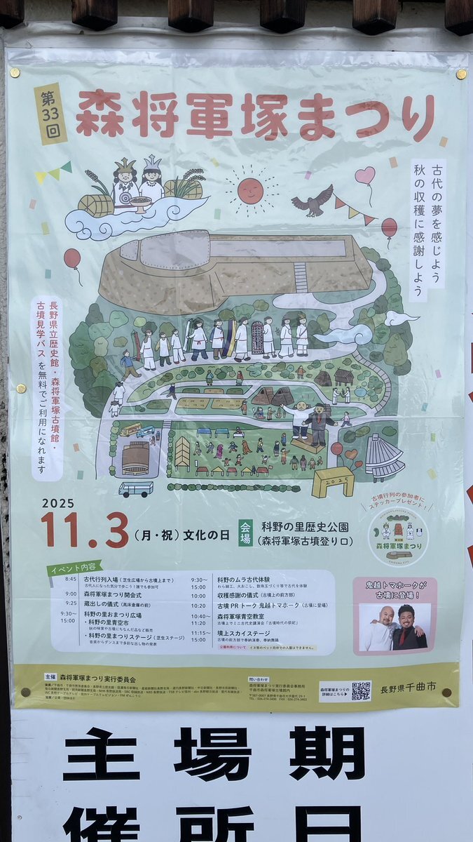 第33回森将軍塚まつり。11/3は隣接する長野県立歴史館の開館記念日で、どちらも無料開放 #森将軍塚古墳 #長野県立歴史館 千曲市の森将軍塚古墳、ライトアップ復活 四半世紀ぶりに「まつり」盛り上げ |信濃毎日新聞デジタル 信州・長野県のニュースサイト shinmai.co.jp/news/article/C…