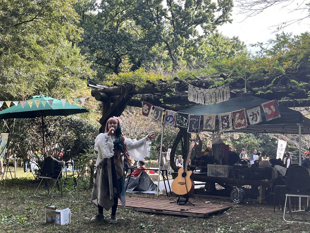 今日の推し活は、#シンガーソングライター 宏菜@Hirona_info さんが出演しました #森展 のライブステージを観に行きました。朝来た時は快晴でしたが、宏菜さんのステージにはパラリと小雨が降ったものの、ステージは無事に出来ました😊✨ #森展 #川崎市 #アートイベント pic.x.com/6UgF1dCCdz