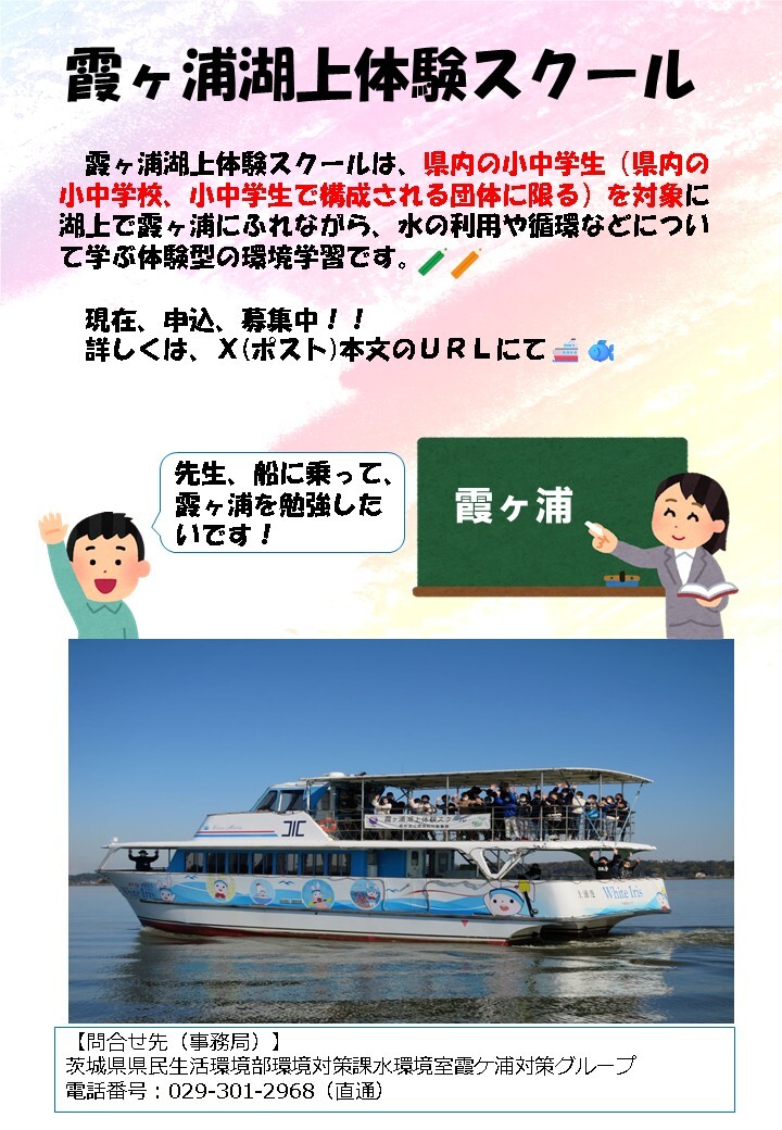#森林湖沼環境税 を活用した取組🌲🐟 湖沼は飲用水や工業用水、農業用水の水源としてだけでなく、憩いの場として私たちの生活を支えています。 県では、県内の小中学校等を対象に霞ヶ浦について理解を深めていただくため、湖上体験スクールを実施しています! 詳細は👇 pref.ibaraki.jp/seikatsukankyo… pic.x.com/5uv5pqKR8D