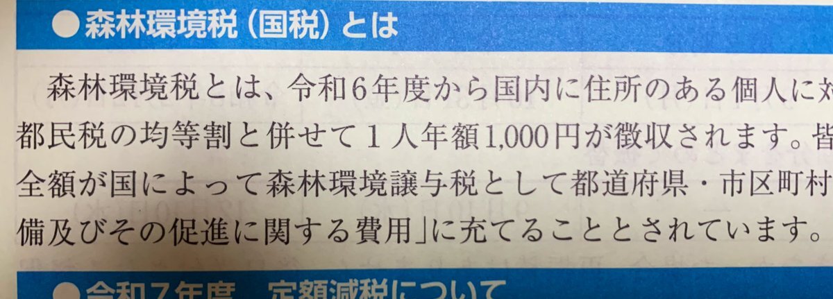 これは一旦国が召し上げて、 各自治体に森林面積と人口で再配分するのね😐 森林無い23区で使い所あるもんなのかな #森林環境税 #住民税 pic.x.com/7oFvI3PFeY