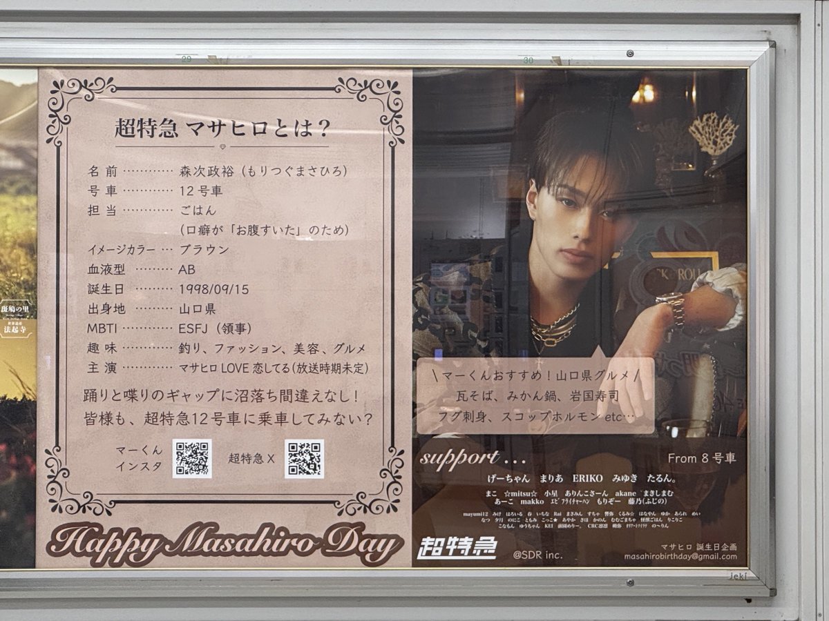 🍚広告掲出のお知らせ🍚 マーくんの27歳のお誕生日をお祝いする生誕広告を掲出いたします!マーくんのお誕生日を盛大にお祝いしましょう🥂 🚉 JR山手線 新宿駅 東口改札内 🗓️ 9/15(月) 〜 21日(日) 7日間 #超特急 #HAPPY_MASAHIRO_DAY #まーくんのもりもりごはん27杯目