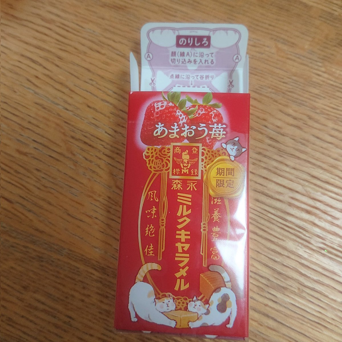 仕事帰り。テストを控えている娘に糖をと思って買ったキャラメル。 1つ貰ったけど、美味ぁい😃 安かったのに苺のフレーバーにわざわざ「あまおう」って付けただけある。 ちょっと甘いもの食べたい時いいね。 #森永 #キャラメル pic.x.com/gkzRcSMlTc