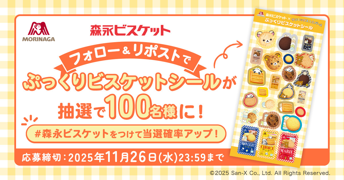 \かわいすぎるコラボシールできました/ 森永ビスケット × サンエックスユニバースのぷっくりビスケットシールを抽選で100名様にプレゼント🎁🍪 シール帳やスマホをデコれるぷっくりシールです💟✨ 応募方法 1️⃣ @morinaga_angel をフォロー 2️⃣ 本投稿をリポストで応募完了!