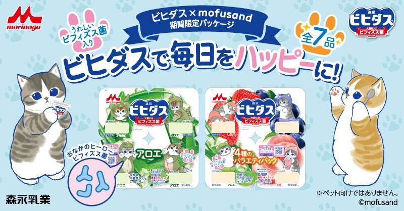 【コラボ商品 お知らせ】 森永ビヒダスヨーグルト4個パック全7種とカップの加糖タイプで mofusandパッケージが期間限定で登場🐾 10月20日週より 全国の店頭で販売中✨ ※取扱状況は企業、店舗により異なります 腸活サポートシートでチャレンジ📝🐈 bifidus.jp/mofusand/ #mofusand #ビヒダス