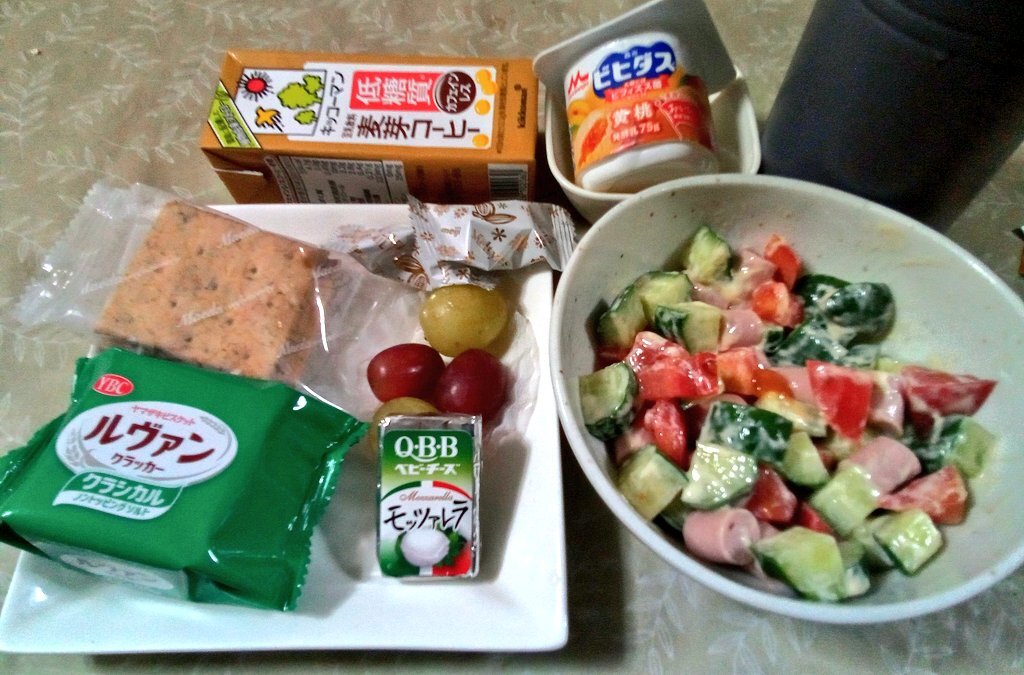 在庫処分にゃ朝飯~ #野菜クラッカー #ルヴァンクラッカー #ベビーチーズ 葡萄 #メルティキス コロコロサラダ (胡瓜・トマト+#おさかなのウインナー) #低糖質豆乳飲料(麦芽コーヒー) #森永ビヒダスヨーグルト 500k弱 #朝ご飯 #朝ごはん #朝食 #前田製菓 #ヤマザキ #六甲バター #ニッスイ pic.x.com/sTzjxaK29W