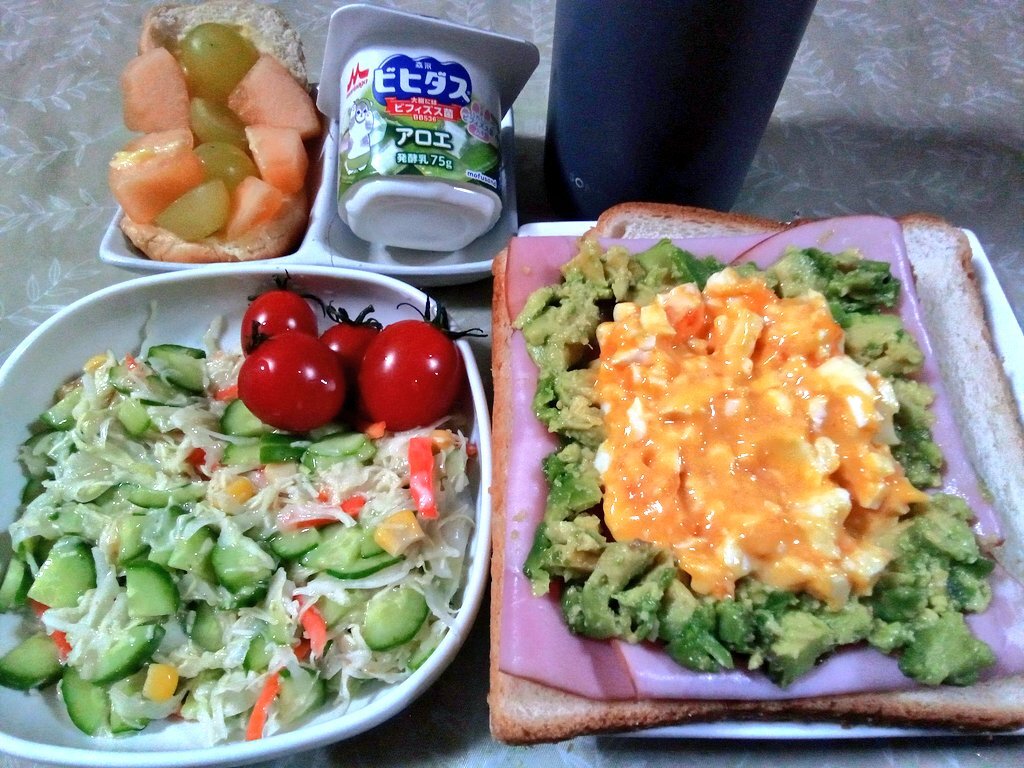 デジャヴにゃサンドの開き(蓋🍞付)で昼飯~ #食パン*2 +ハム・アボカド・半熟卵&マヨマスタード コールスローにゃサラダ+ミニトマト #薄皮クリームパン+葡萄にメロン #森永ビヒダスヨーグルト(アロエ) 640k弱 #昼ご飯 #昼ごはん #昼食 #フジパン #ヤマザキ pic.x.com/BzjJJZj30T