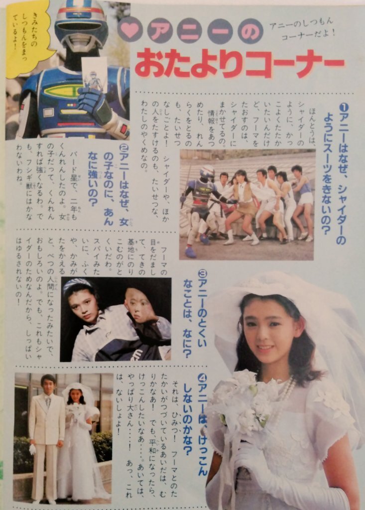 承前 テレビマガジンスペシャル #超電子バイオマン #宇宙刑事シャイダー #テレビマガジン 『シャイダー』は敵味方ともに #JAC(現 #JAE)の若手が多かった。#アニー 役の #森永奈緒美 女史は特に高い人気を誇った。 pic.x.com/SRuNb9YZ9s