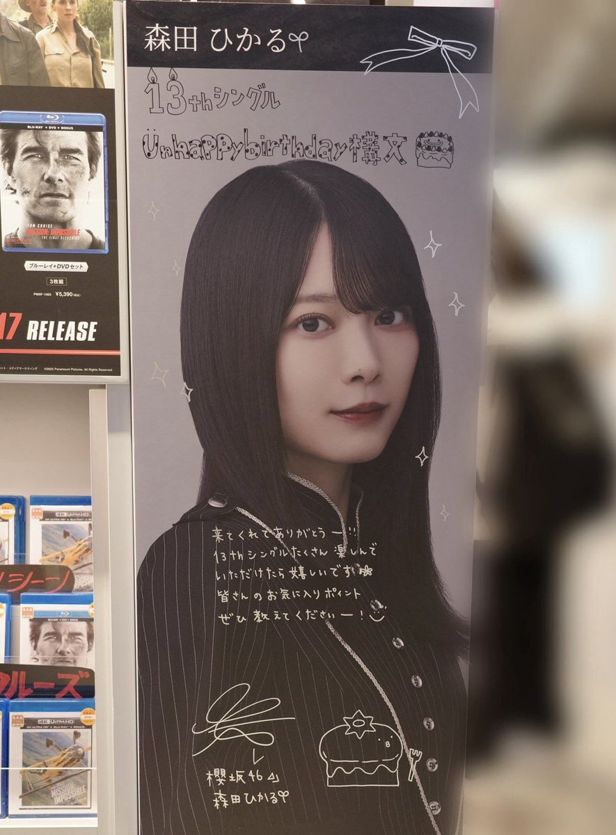 坂道store様 写真共有ありがとうございます🌸🎶 そして…フォローバック光栄です。 櫻坂46 「Unhappy birthday構文」 発売記念パネル展 🔅サイン入り写真 森田ひかるさん‼️パネルも‼️絶好調‼️ #櫻坂46_UnhappyBD構文 #櫻坂46 #森田ひかる #櫻坂ラジコン部 #森田ひかる熱狂応援団 #るんちゃん 🌱 pic.x.com/VDAALJNWcW x.com/sakamichi_stor…